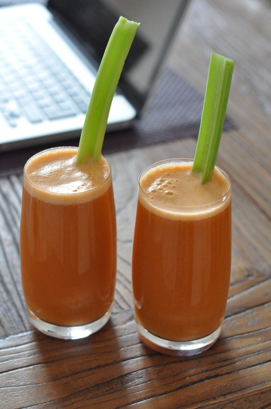 (apple meets carot meets ginger meets pistachio oil meets celery)